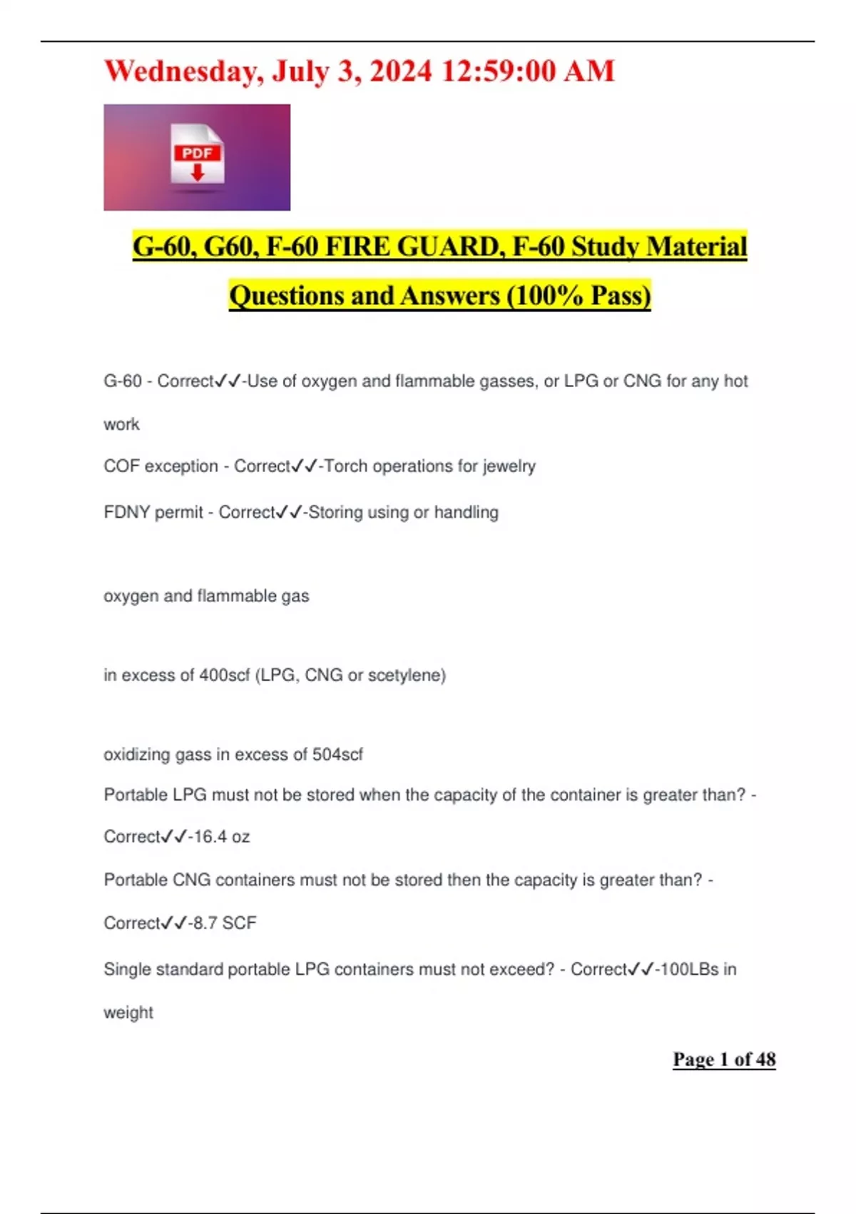 G-60, G60, F-60 FIRE GUARD, F-60 Study Material Questions and Answers (100% Pass)