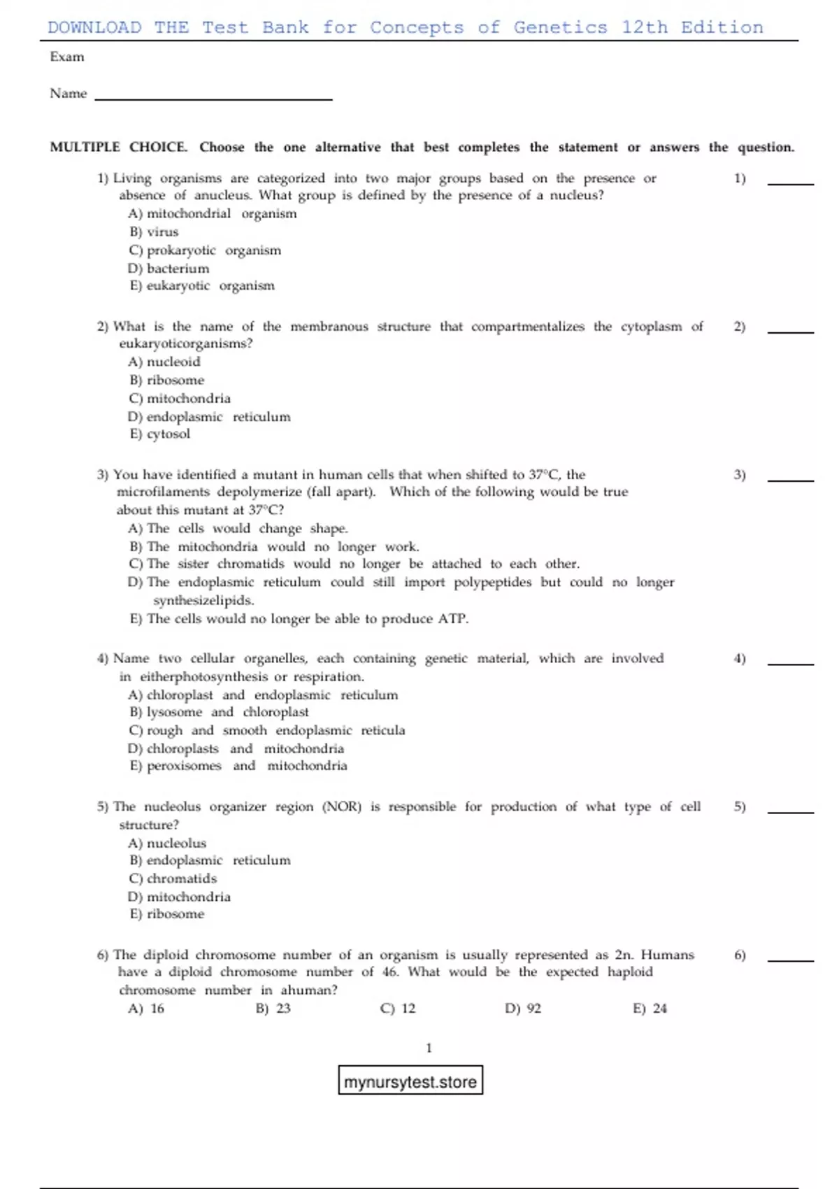 Test bank for concepts of genetics 12th edition klug UPDATED 2024/25 REVISED EDITION