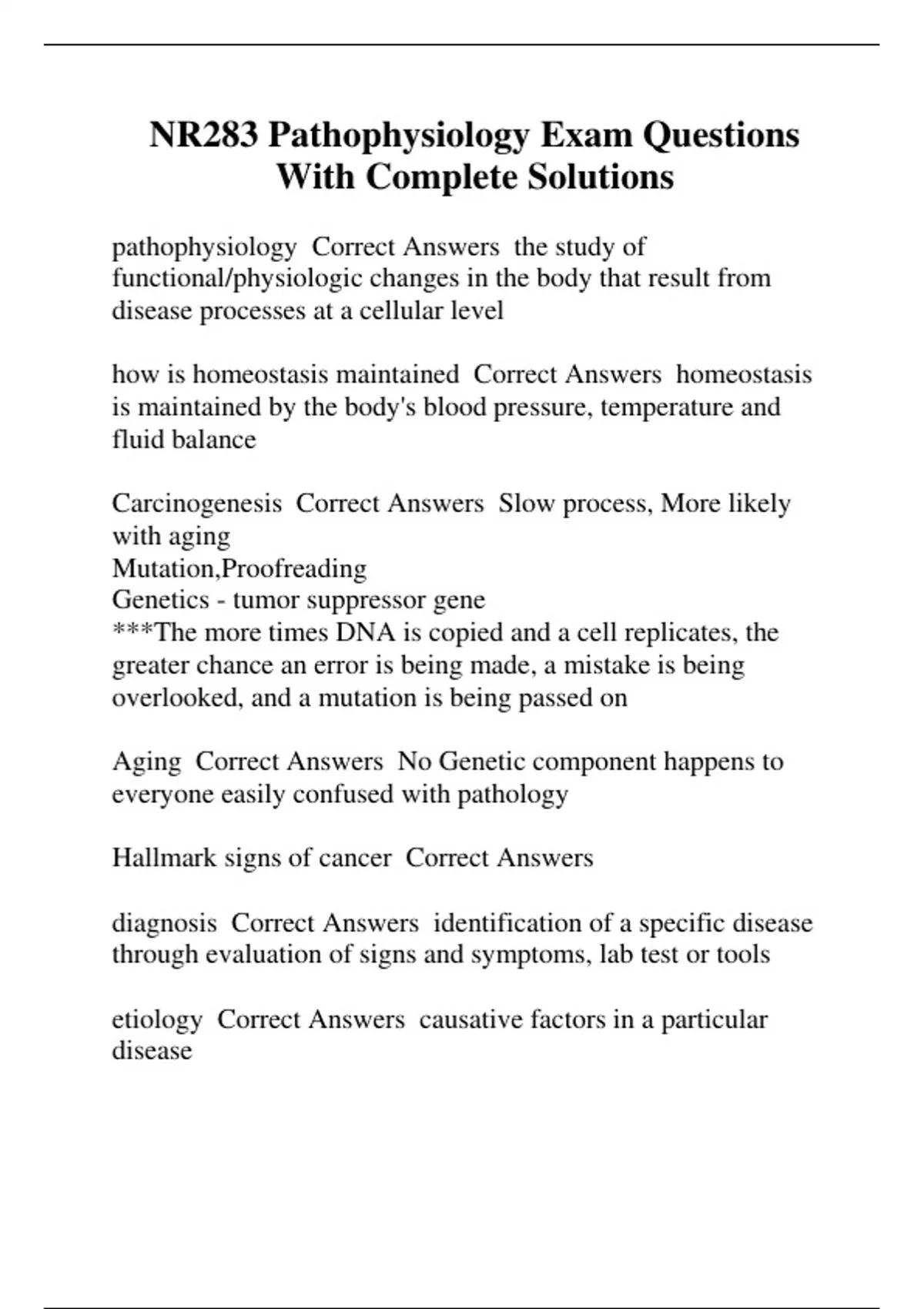 NR283 Pathophysiology Exam Questions With Complete Solutions