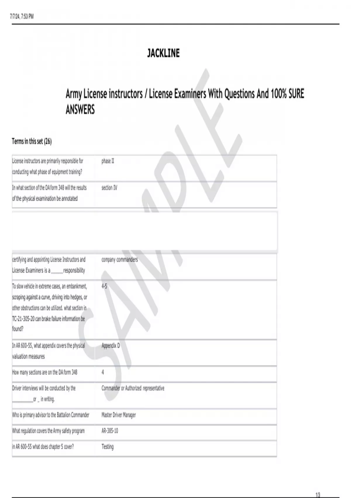 Army License instructors / License Examiners With Questions And 100% SURE ANSWERS