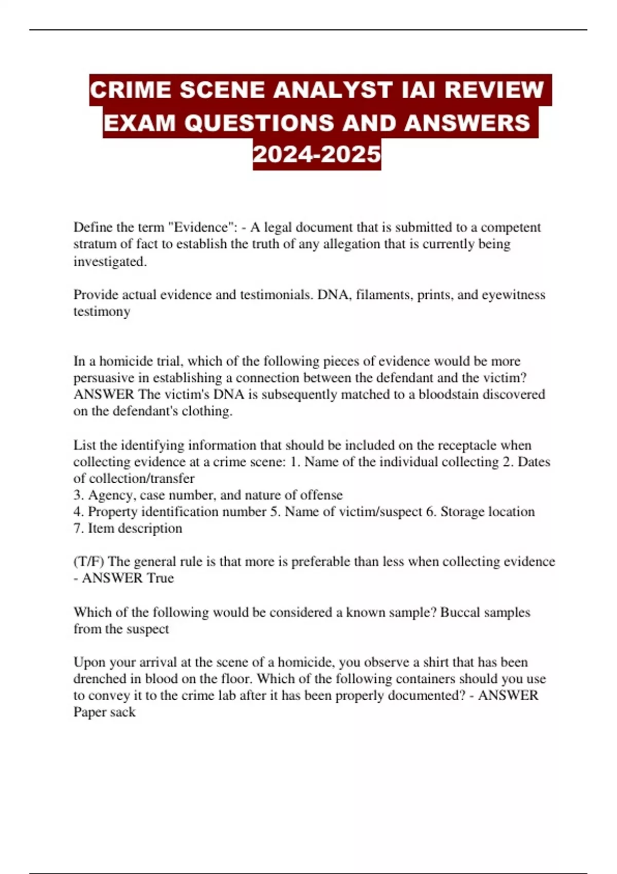 CRIME SCENE ANALYST IAI REVIEW EXAM QUESTIONS AND ANSWERS ...