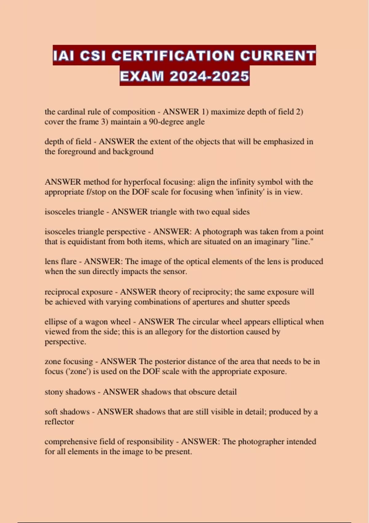 IAI CSI CERTIFICATION CURRENT EXAM ...