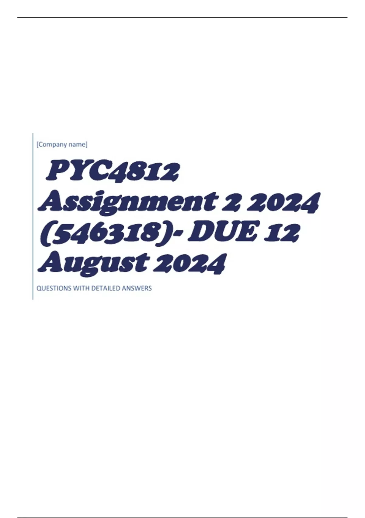 QUESTIONS WITH ANSWERS PYC4812 Assignment 2 2024 (546318)- DUE 12 August 2024