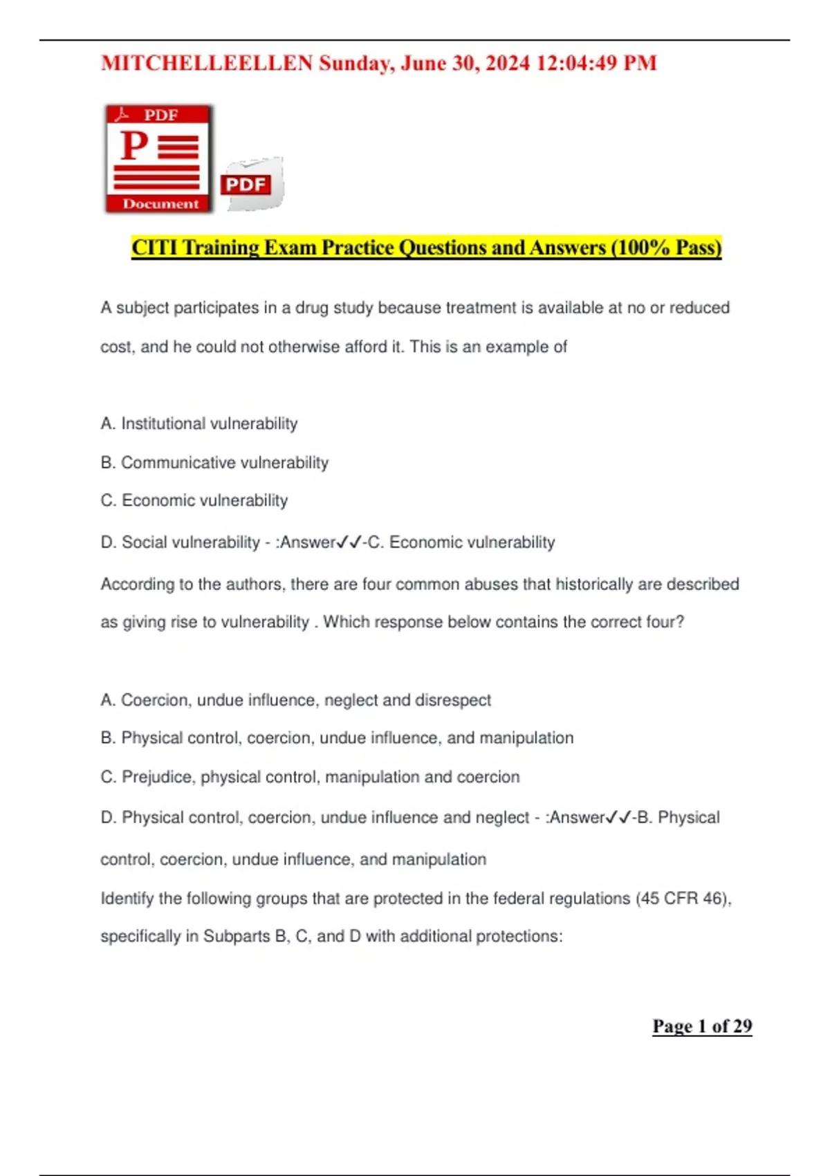citi training exam practice questions and answers