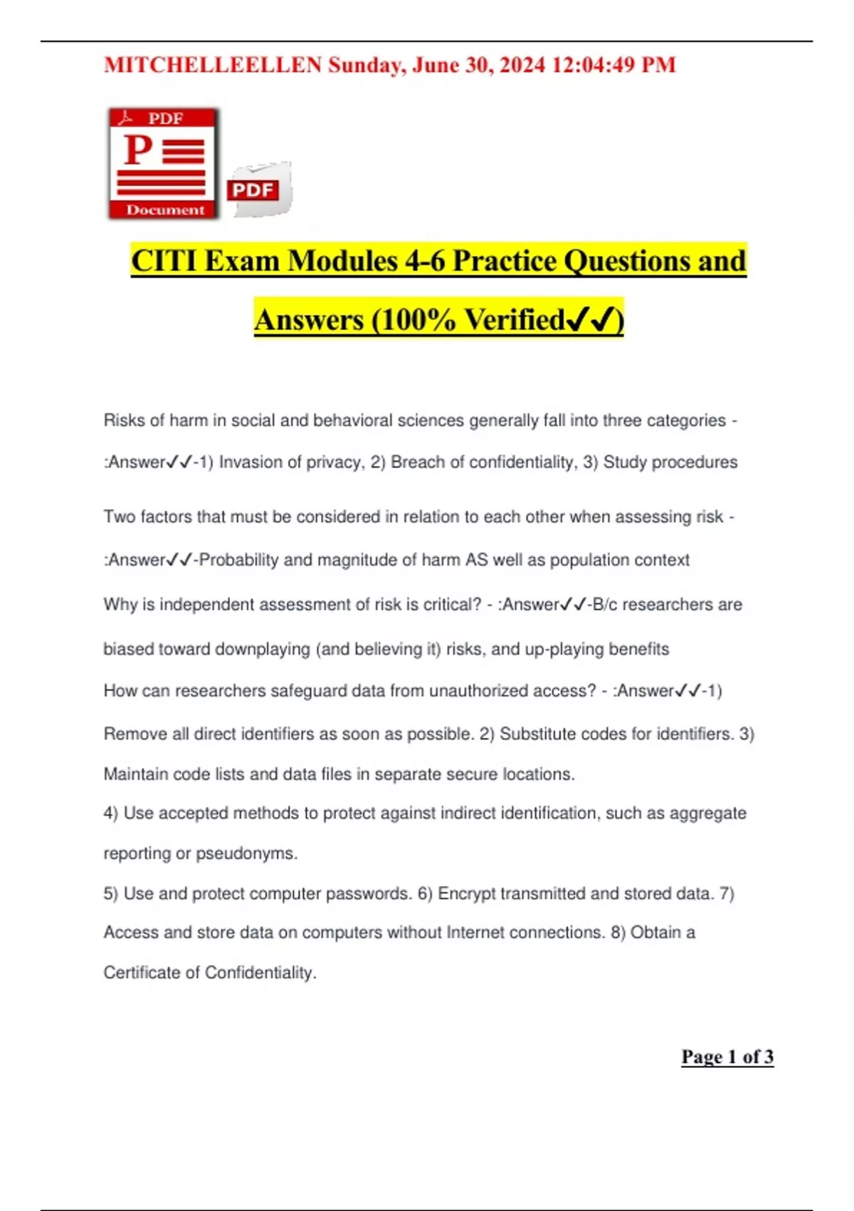 CITI Exam Modules 4-6 Practice Questions and Answers (100% Verified️️