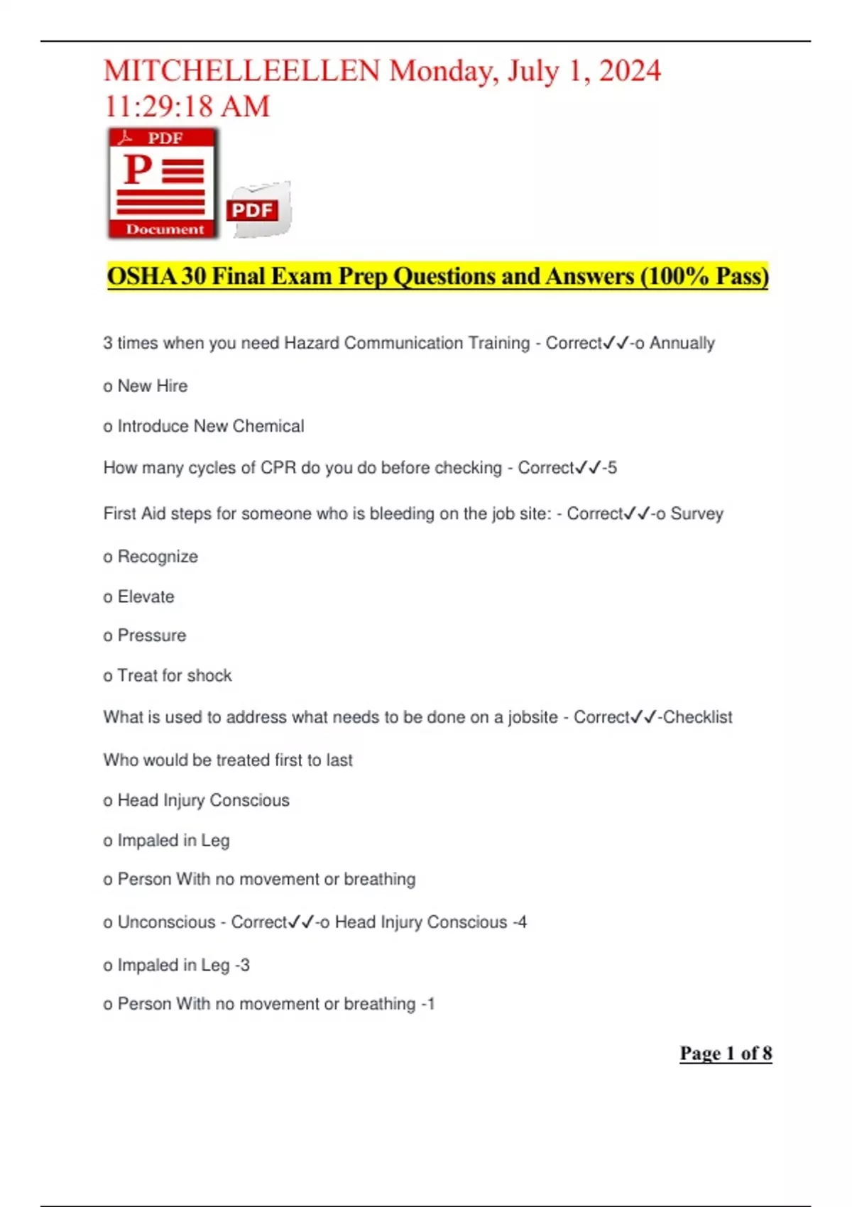 OSHA 30 Final Exam Prep Questions and Answers (100% Pass)