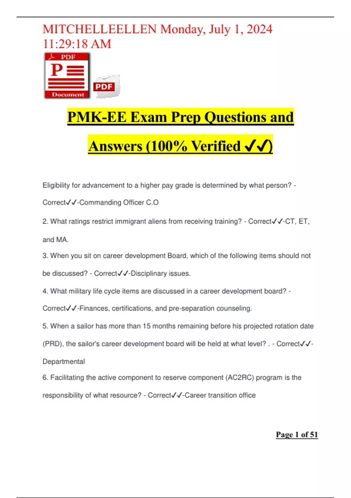 PMK-EE Exam Prep Questions and Answers (100% Verified ️️
