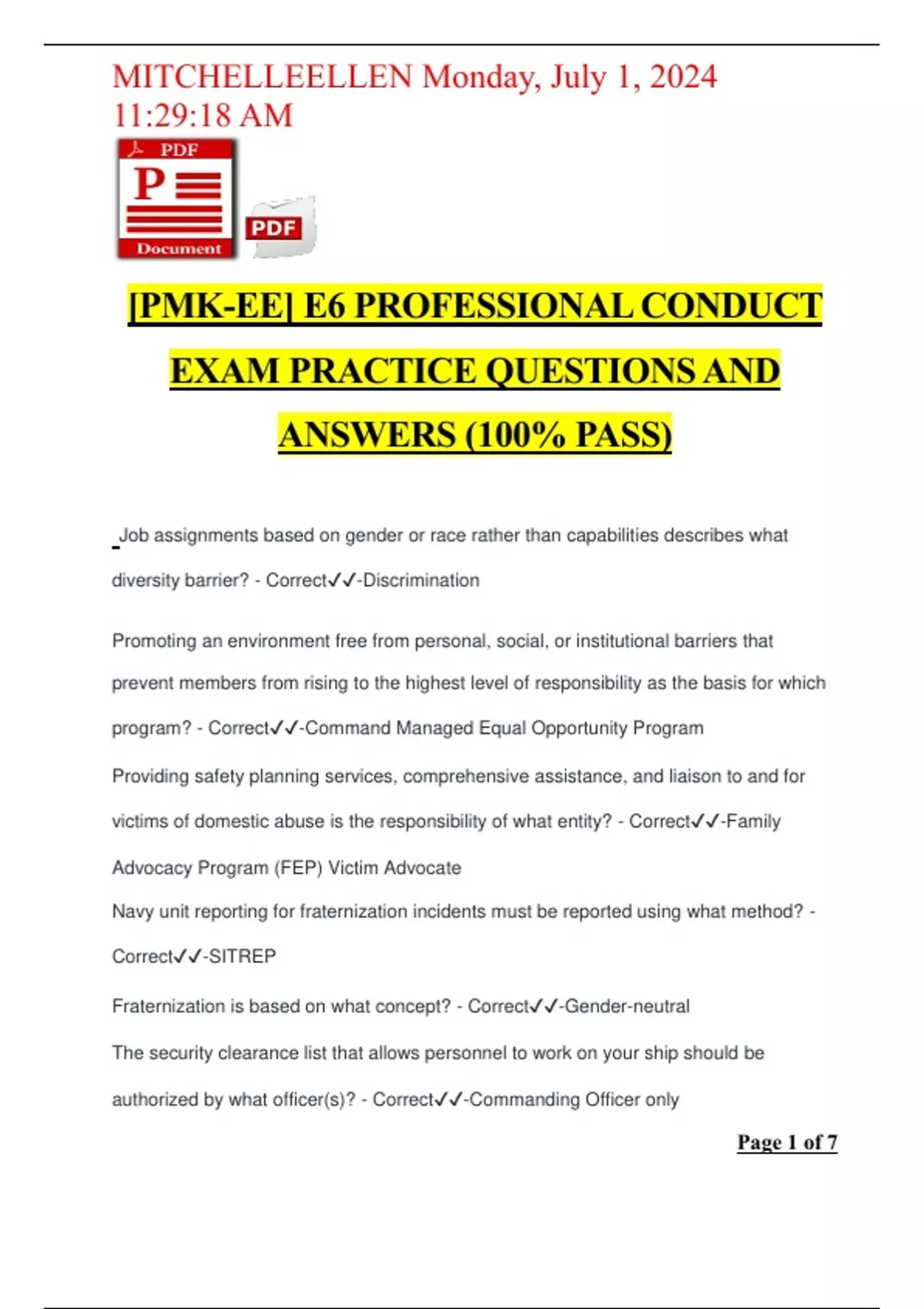 [PMK-EE] E6 PROFESSIONAL CONDUCT EXAM PRACTICE QUESTIONS AND ANSWERS (100% PASS)