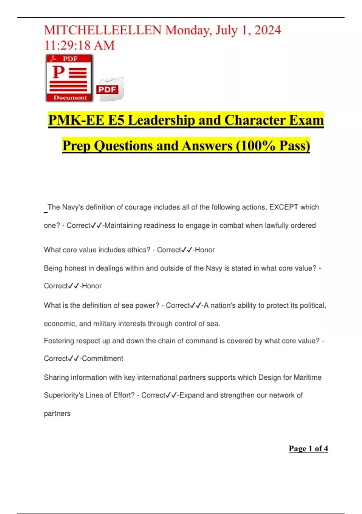 PMK-EE E5 Leadership and Character Exam Prep Questions and Answers (100% Pass)
