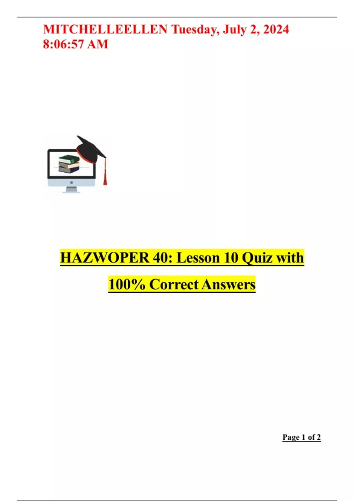HAZWOPER 40: Lesson 10 Quiz with 100% Correct Answers
