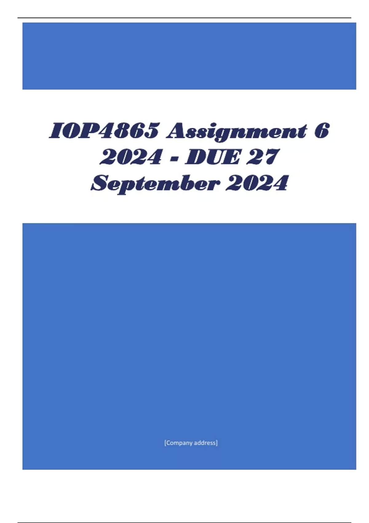 IOP4865 Assignment 6 2024 - DUE 27 September 2024 QUESTIONS WITH COMPLETE ANSWERS