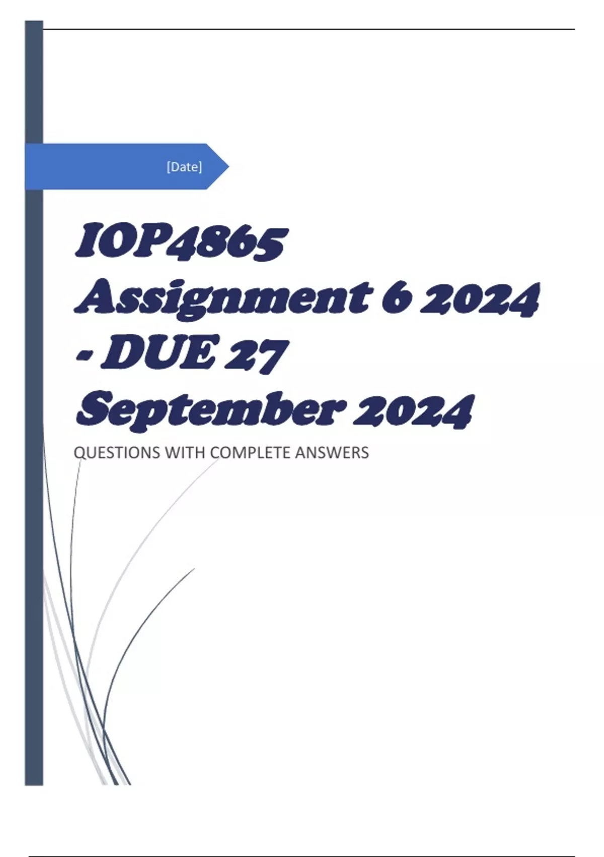 IOP4865 Assignment 6 2024 - DUE 27 September 2024 QUESTIONS WITH ANSWERS
