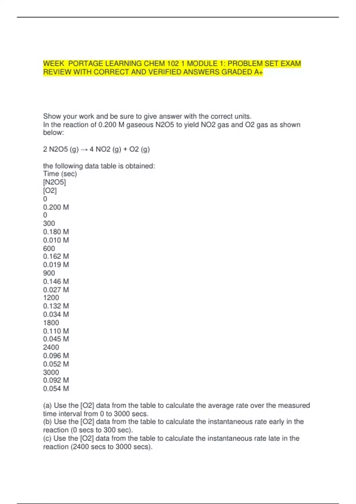 WEEK PORTAGE LEARNING CHEM 102 1 MODULE 1: PROBLEM SET EXAM REVIEW WITH CORRECT AND VERIFIED ANSWERS GRADED A+
