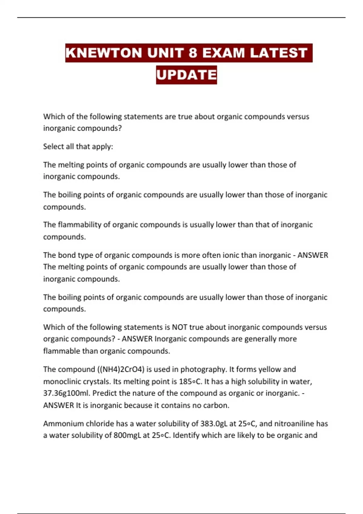 KNEWTON UNIT 8 EXAM LATEST UPDATE...