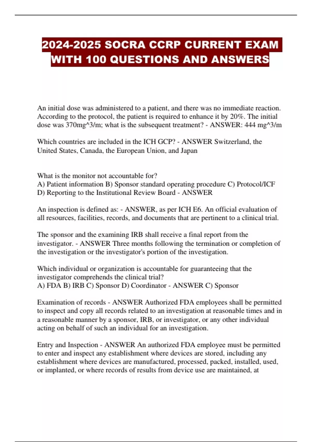 SOCRA CCRP CURRENT EXAM WITH 100 QUESTIONS AND ANSWERS...