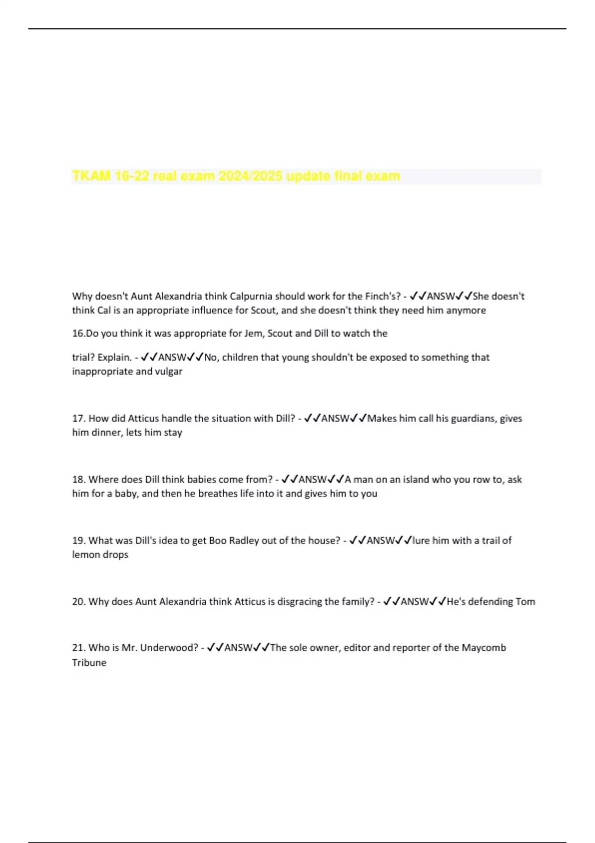 TKAM 16-22 real exam 2024/2025 update final exam