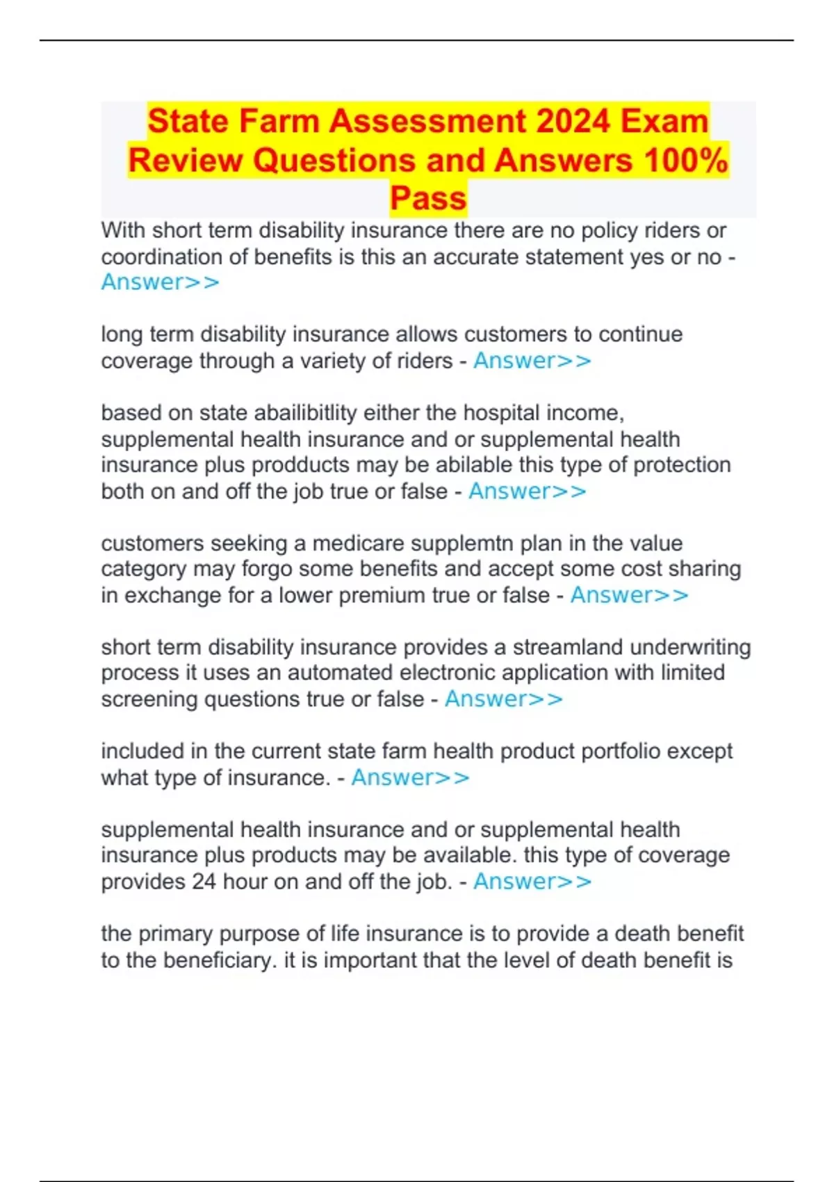 State Farm Assessment 2024 Exam Review Questions and Answers 100% Pass