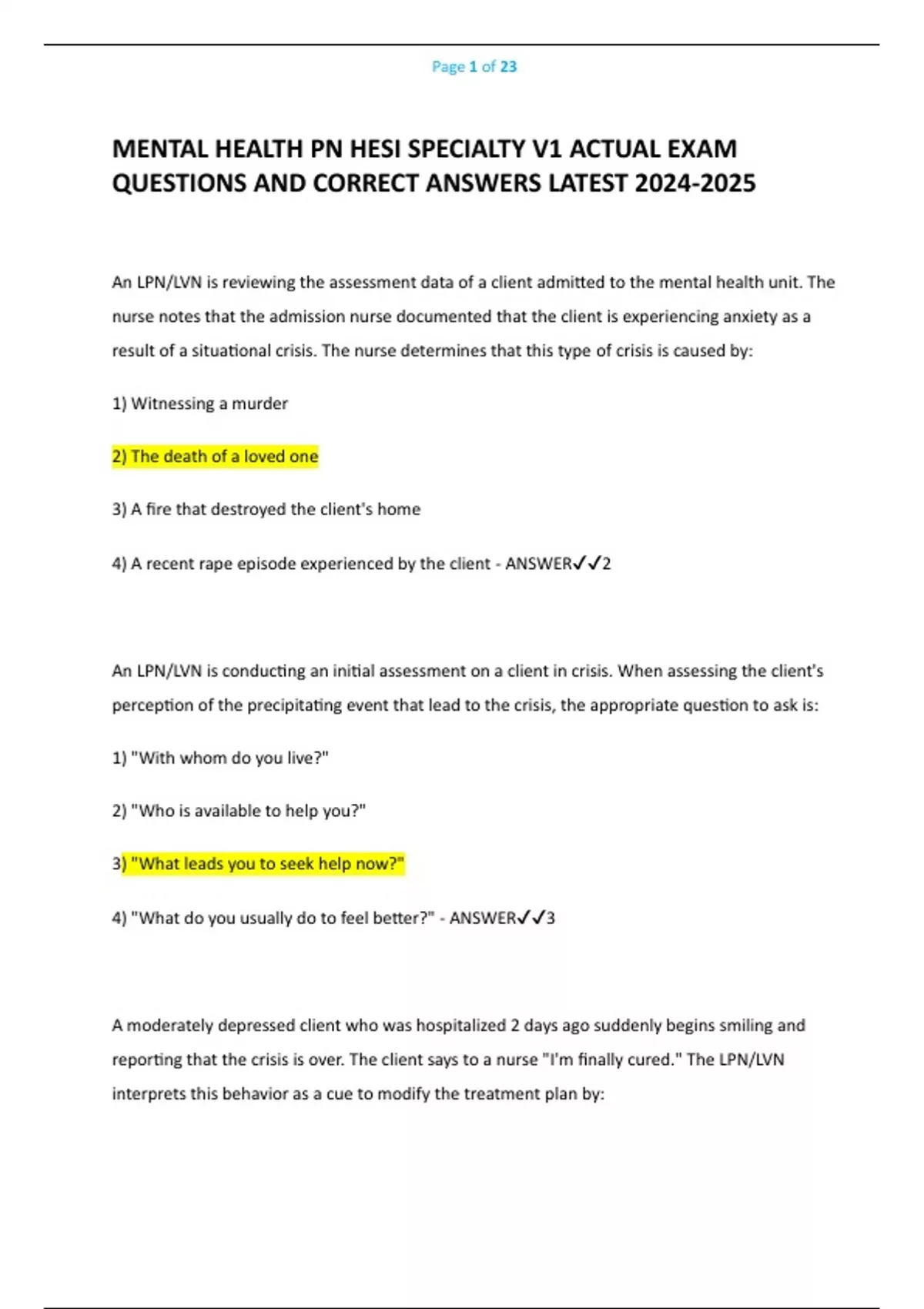 - MENTAL HEALTH PN HESI SPECIALTY V1