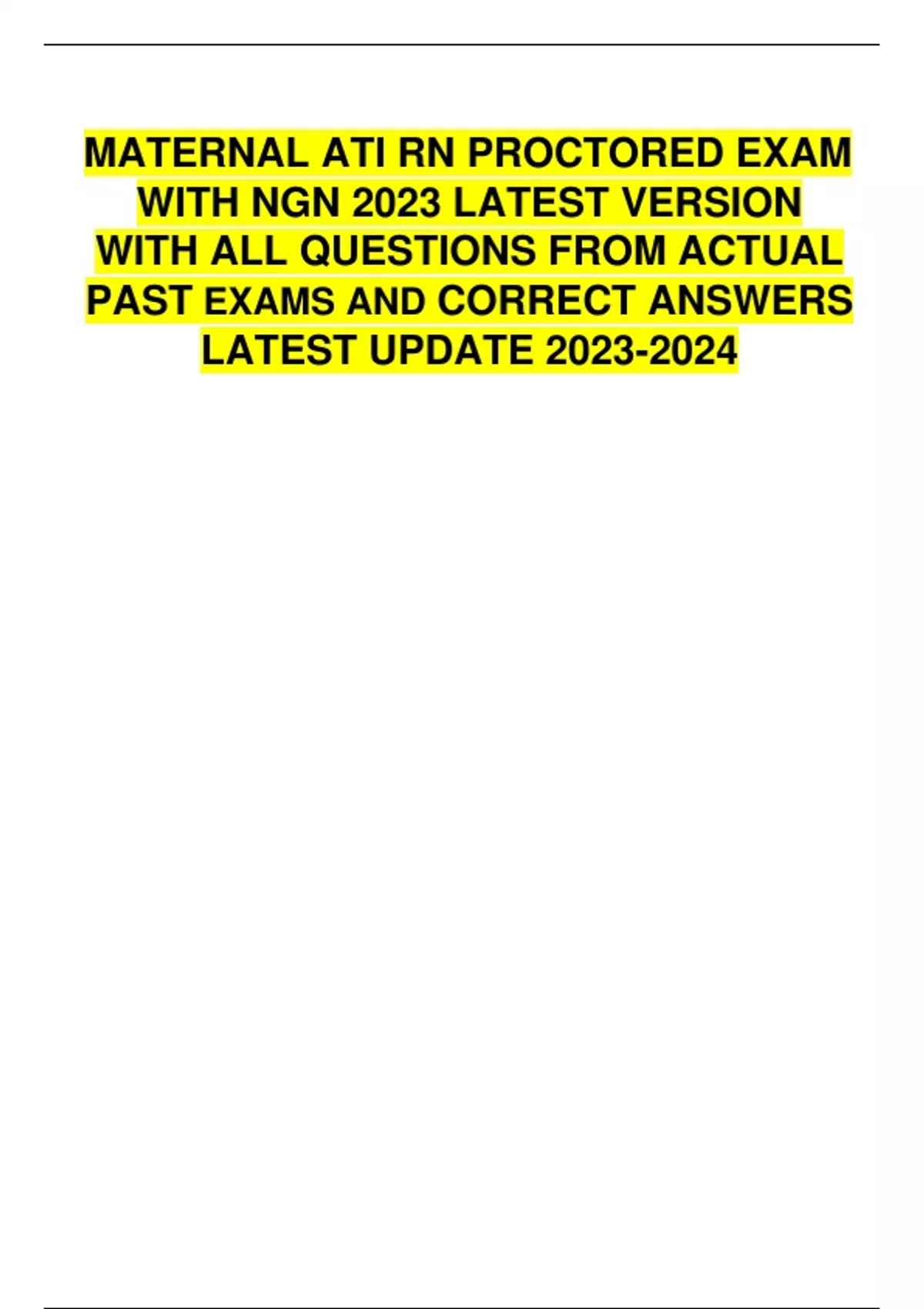 MATERNAL ATI RN PROCTORED EXAM WITH NGN 2023 LATEST VERSION WITH ALL QUESTIONS FROM ACTUAL PAST EXAMS AND CORRECT ANSWERS LATEST UPDATE