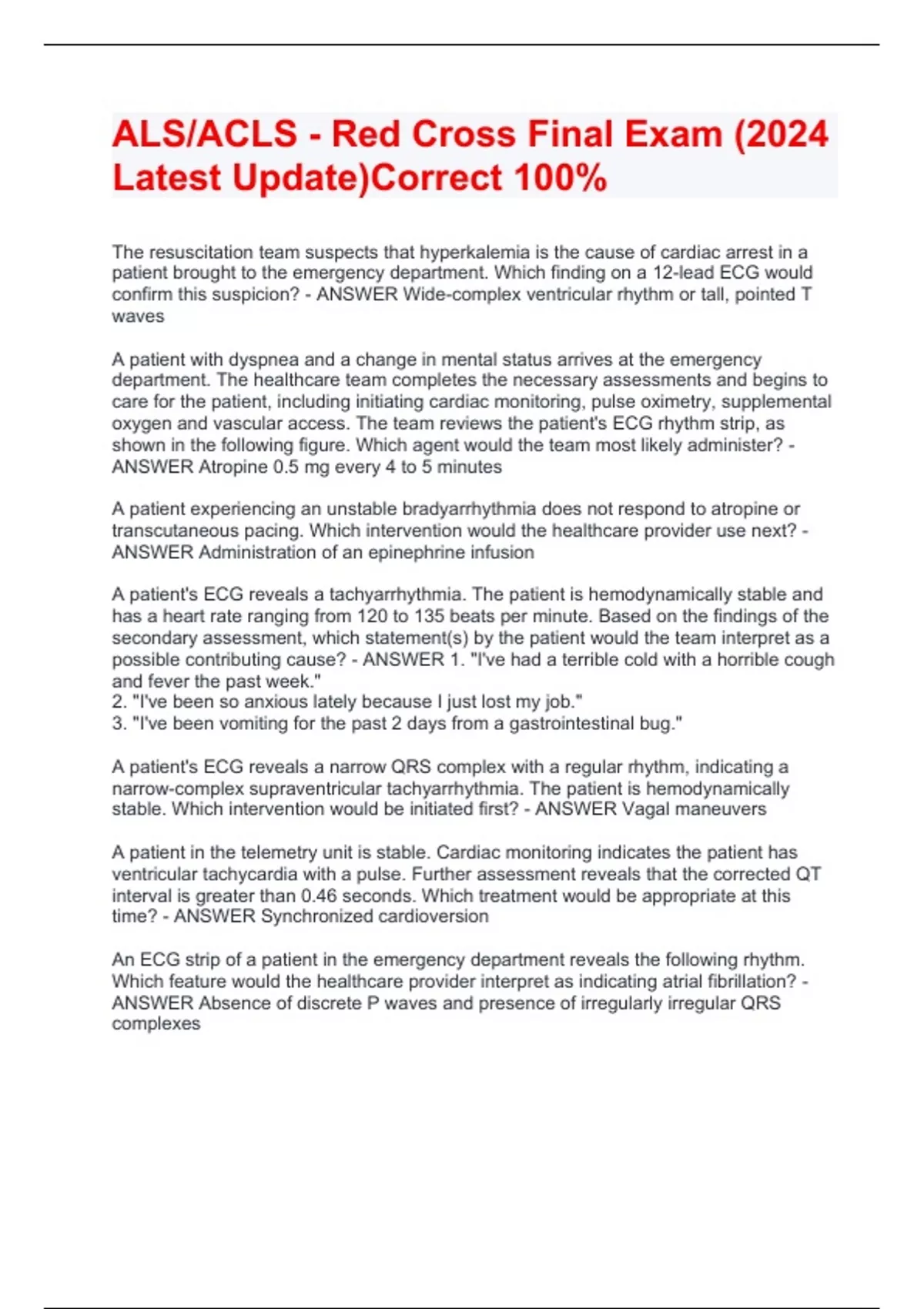 ALS/ACLS - Red Cross Final Exam (2024 Latest Update)Correct 100%