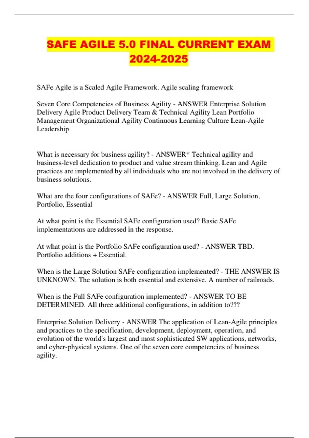 SAFE AGILE 5.0 FINAL CURRENT EXAM ...