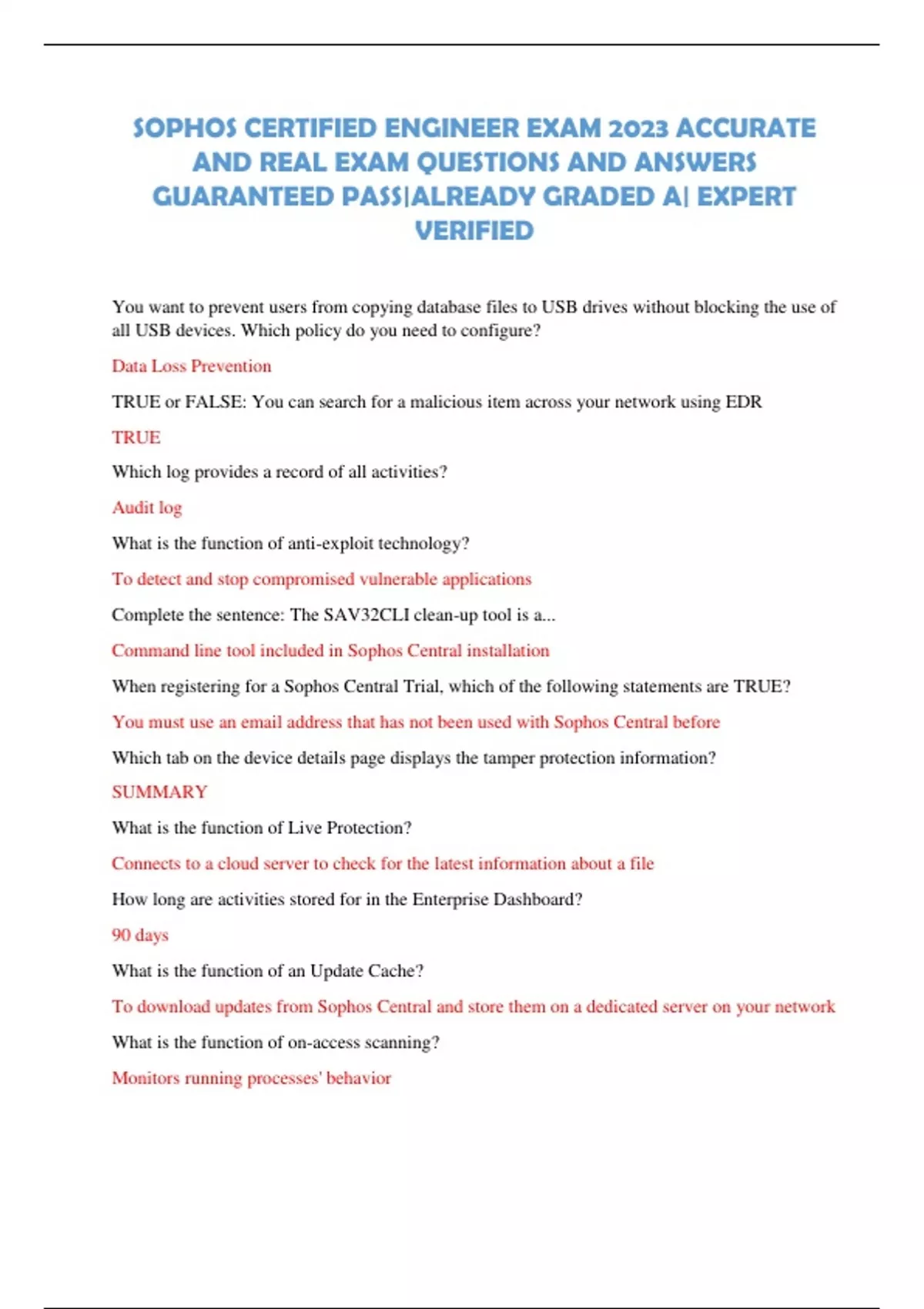 SOPHOS CERTIFIED ENGINEER EXAM 2023 ACCURATE AND REAL EXAM QUESTIONS AND ANSWERS GUARANTEED PASS|ALREADY GRADED A| EXPERT VERIFIED