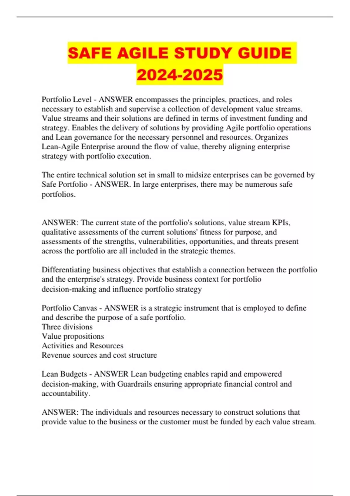 2024-2025: ALL SAFE AGILE BUNDLED CURRENT EXAMS WITH COMPLETE QUESTIONS AND VERIFIED ANSWERS 100% PASS ASSURANCE