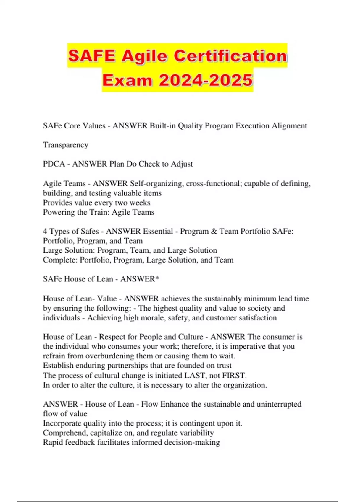 2024-2025: ALL SAFE AGILE BUNDLED CURRENT EXAMS WITH COMPLETE QUESTIONS AND VERIFIED ANSWERS 100% PASS ASSURANCE