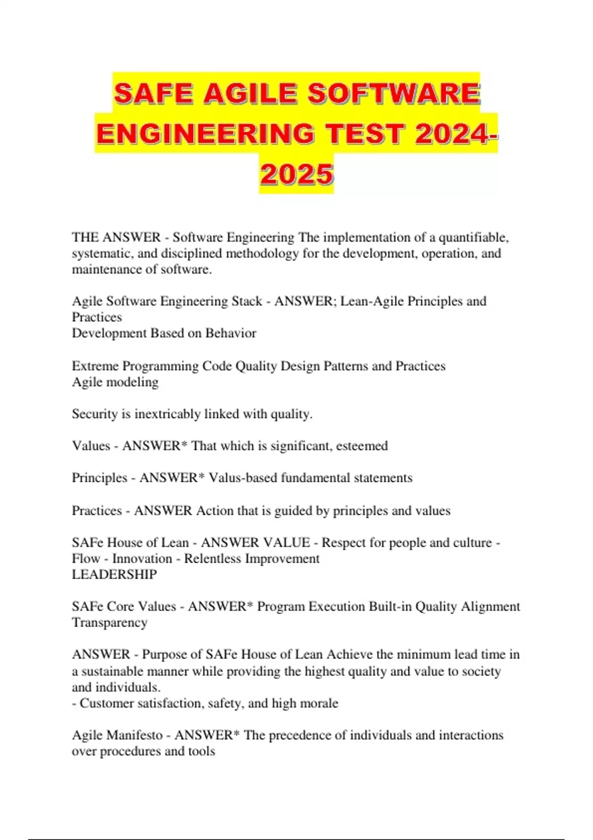 2024-2025: ALL SAFE AGILE BUNDLED CURRENT EXAMS WITH COMPLETE QUESTIONS AND VERIFIED ANSWERS 100% PASS ASSURANCE