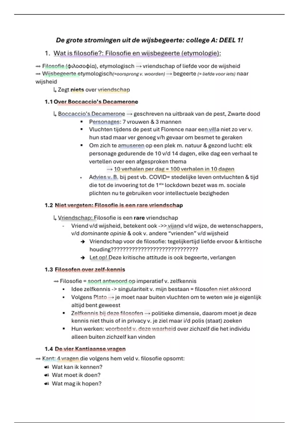 Samenvatting 18/20, 1e zit: De grote stromingen uit de wijsbegeerte: collega A hfstk 1-6