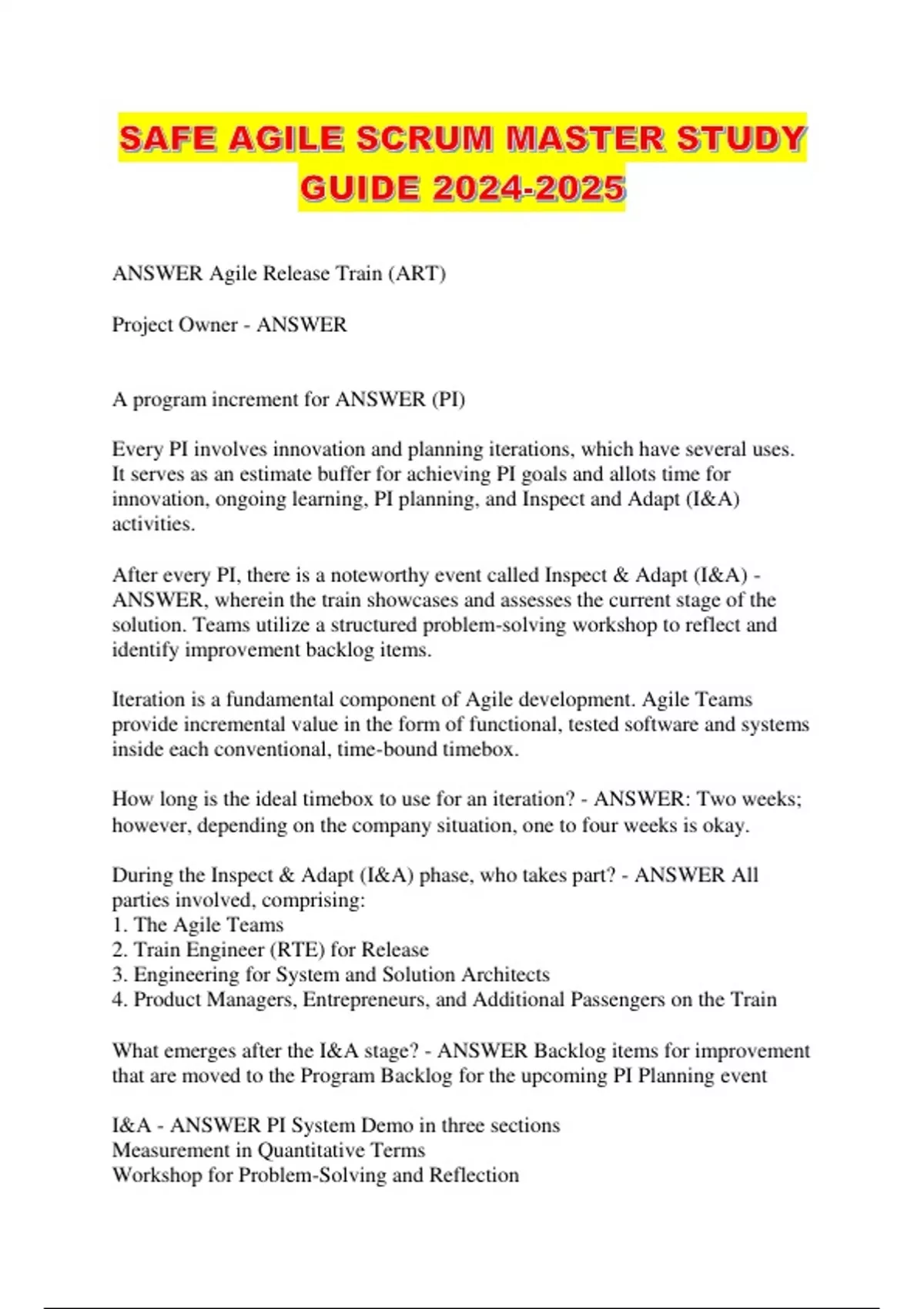 SAFE AGILE SCRUM MASTER STUDY GUIDE