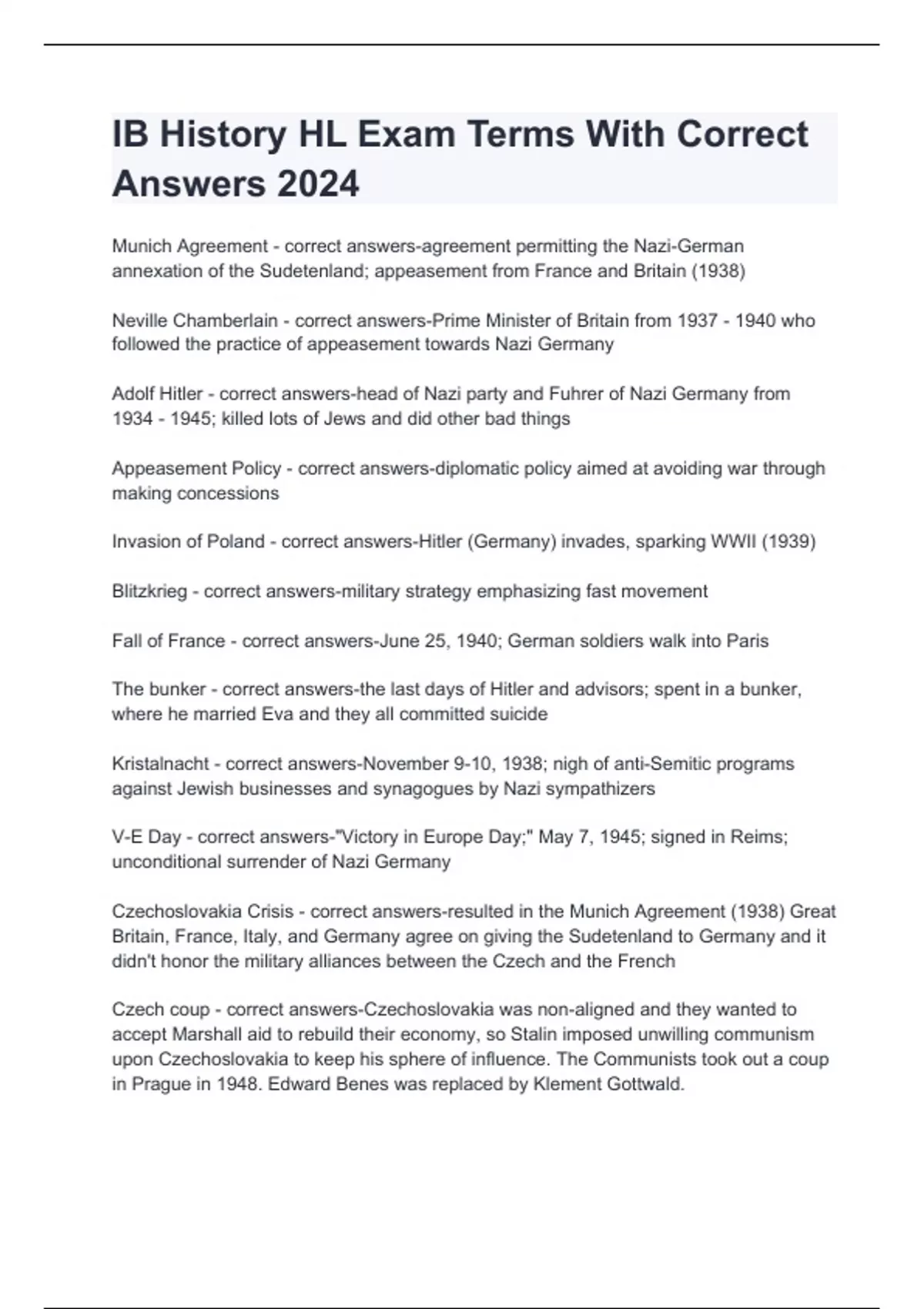 IB History HL Exam Terms With Correct Answers 2024