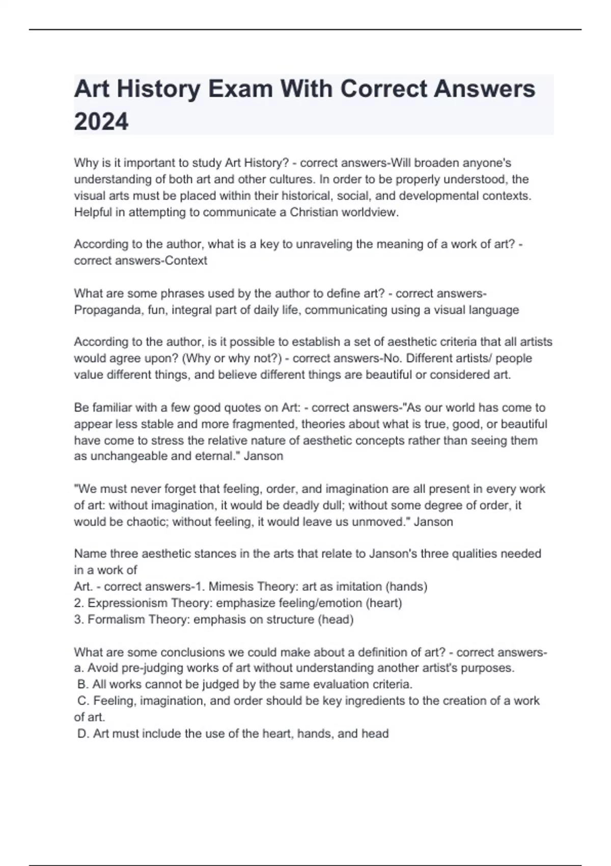 Art History Exam With Correct Answers