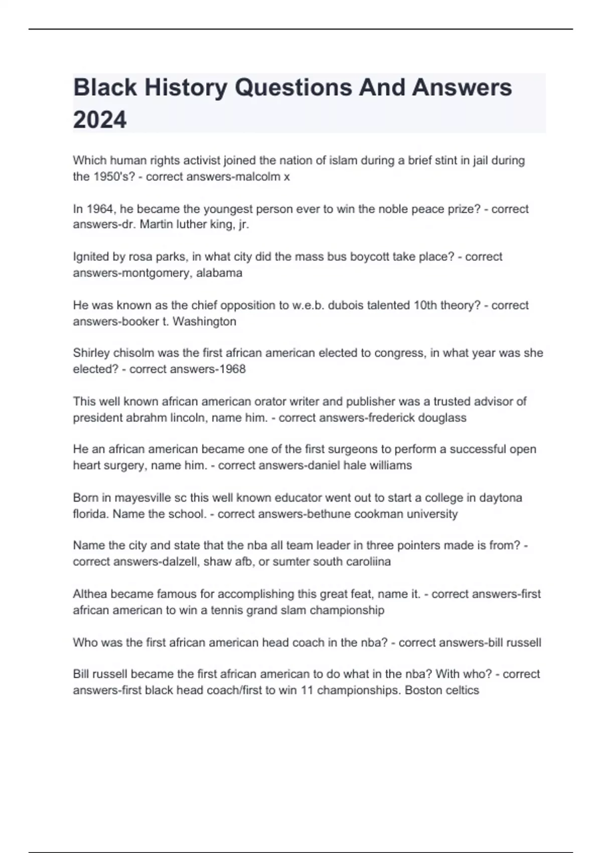 black history questions and answers 2024