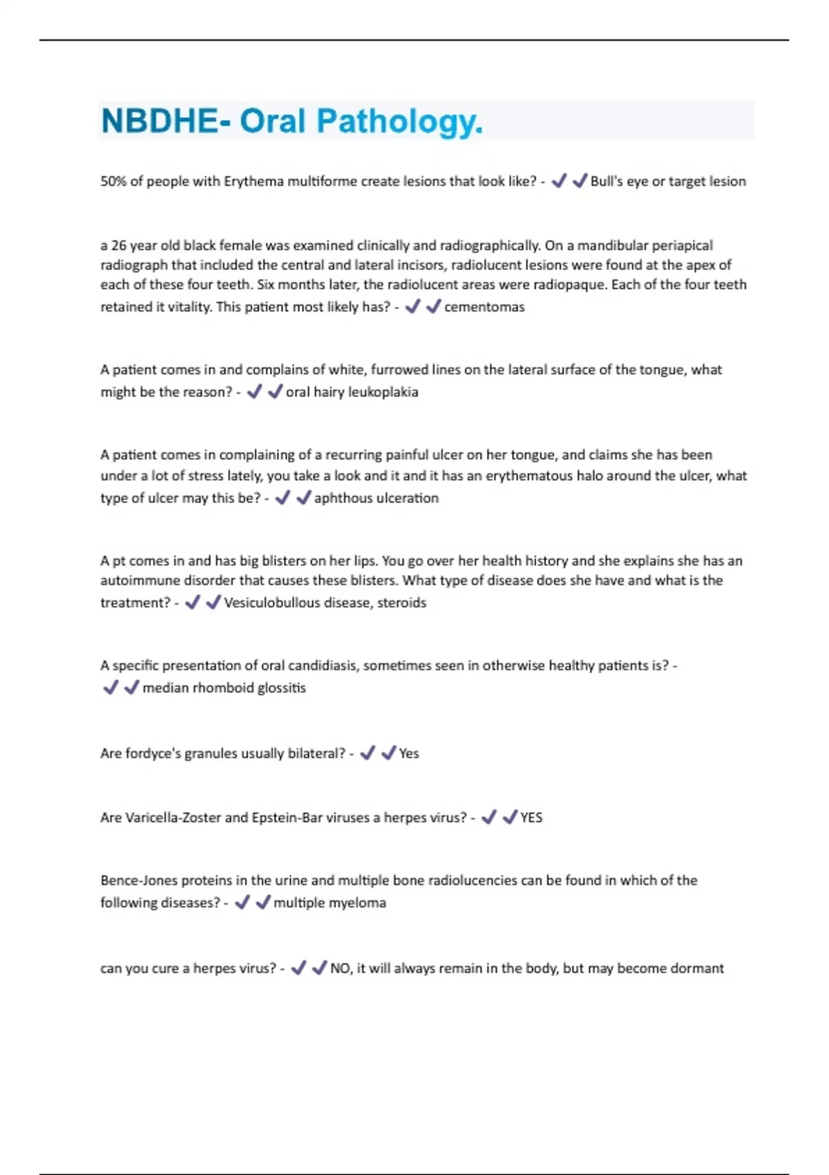 - NBDHE- Oral Pathology.