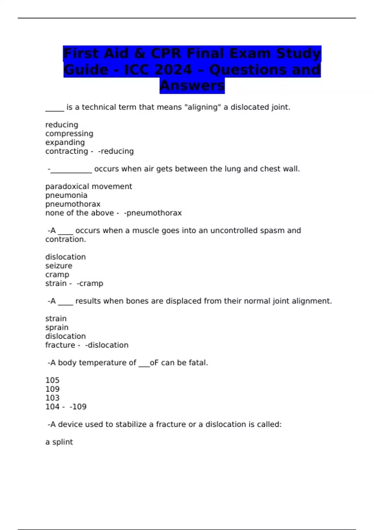 First Aid & CPR Final Exam Study Guide - ICC 2024 – Questions and Answers