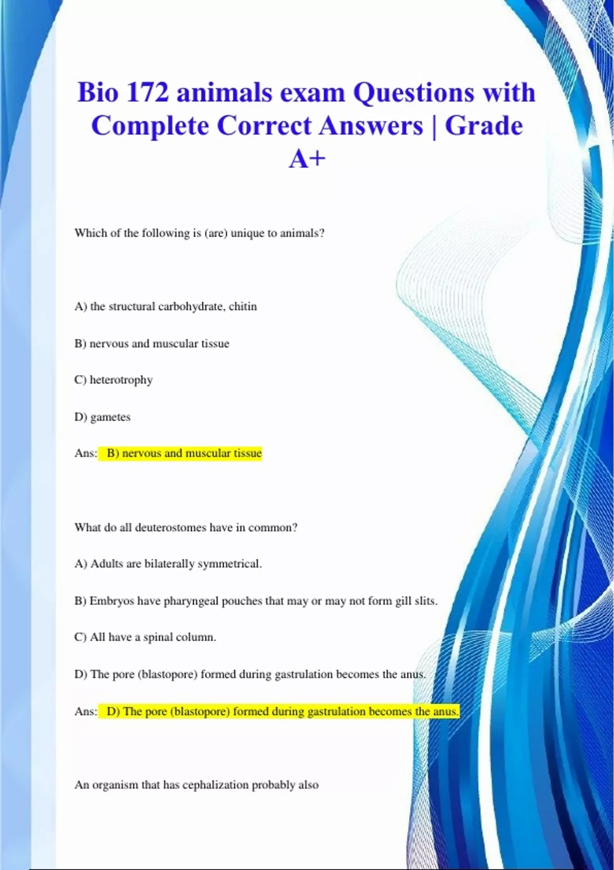 bio 172 animals exam questions with complete corr
