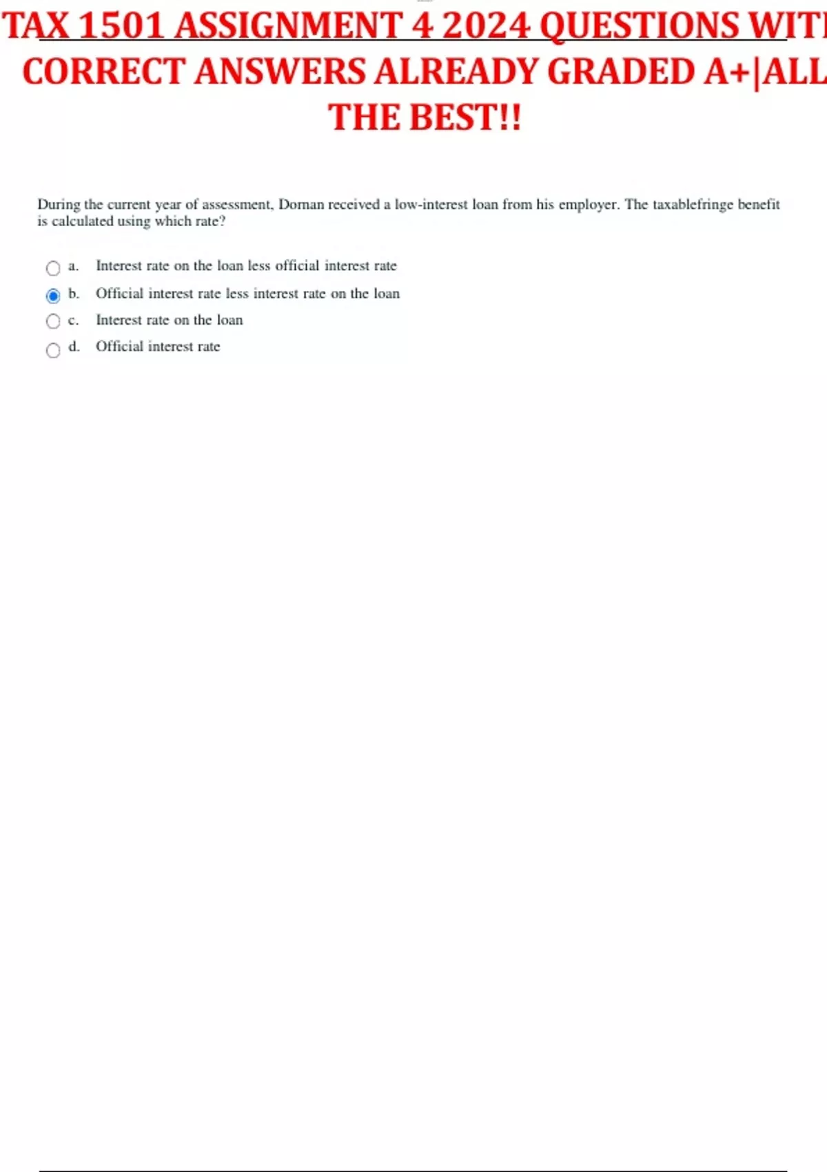 TAX 1501 ASSIGNMENT 4 2024 QUESTIONS WITH