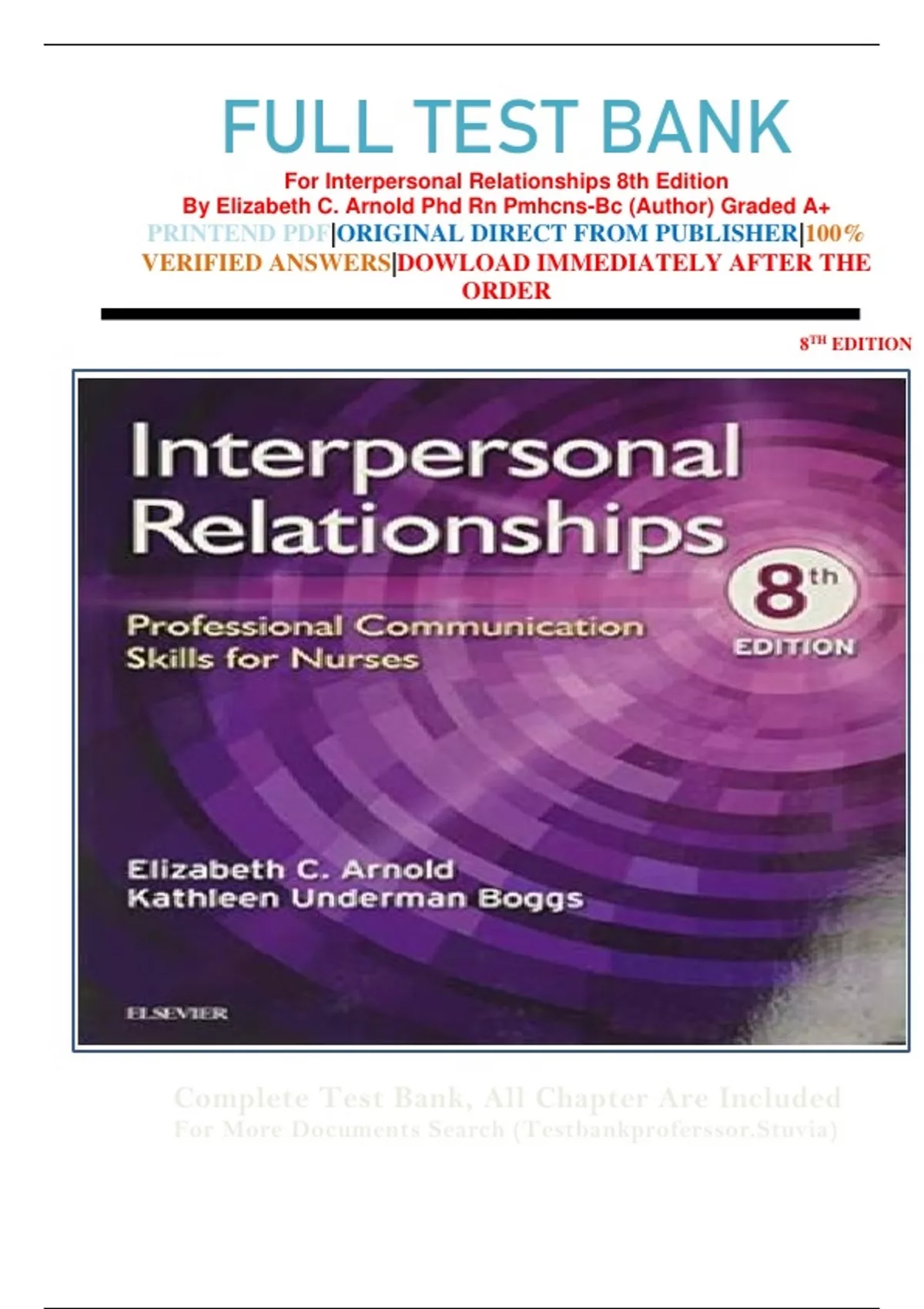 FULL TEST BANK For Interpersonal Relationships 8th Edition By Elizabeth C. Arnold Phd Rn Pmhcns-Bc (Author) Graded A+