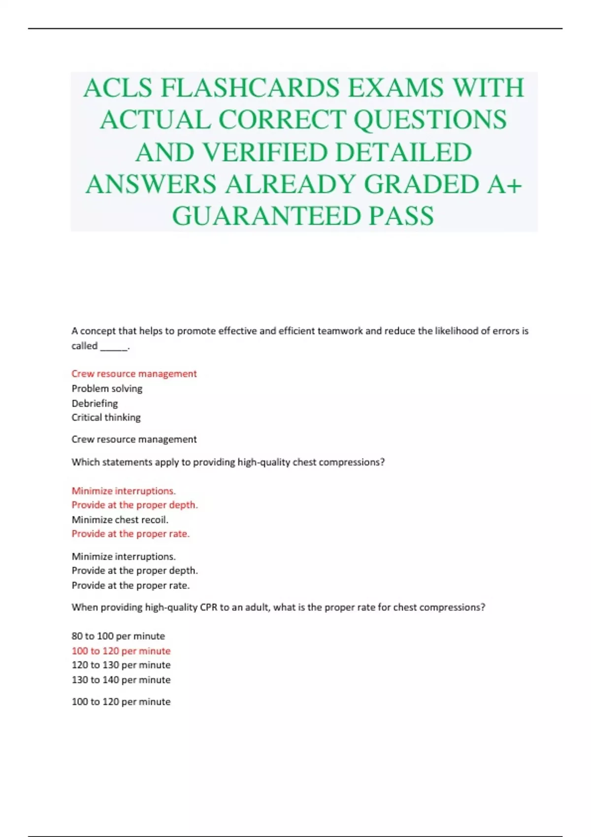 ACLS FLASHCARDS EXAMS WITH ACTUAL CORRECT QUESTIONS AND VERIFIED DETAILED ANSWERS ALREADY GRADED A+ GUARANTEED PASS