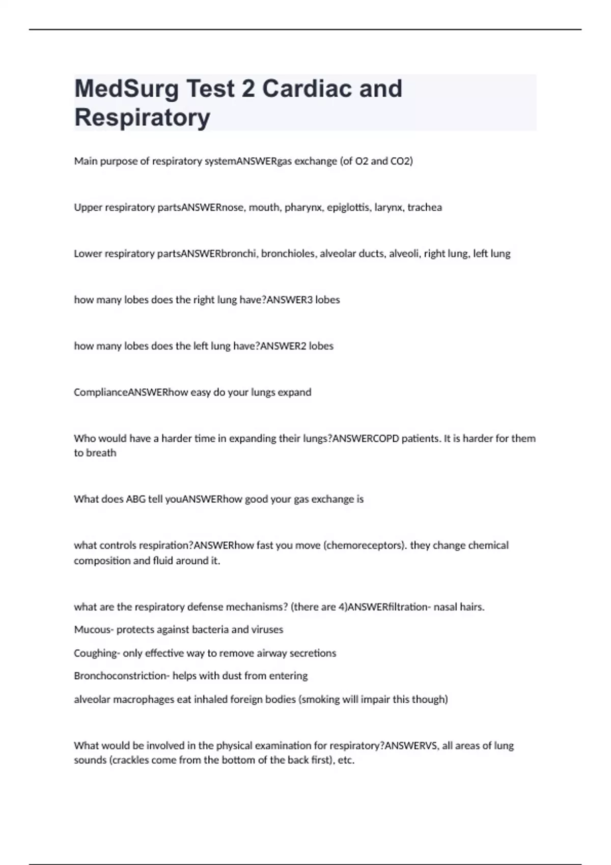 MedSurg Test 2 Cardiac and Respiratory 2023 Questions With Verified Answers