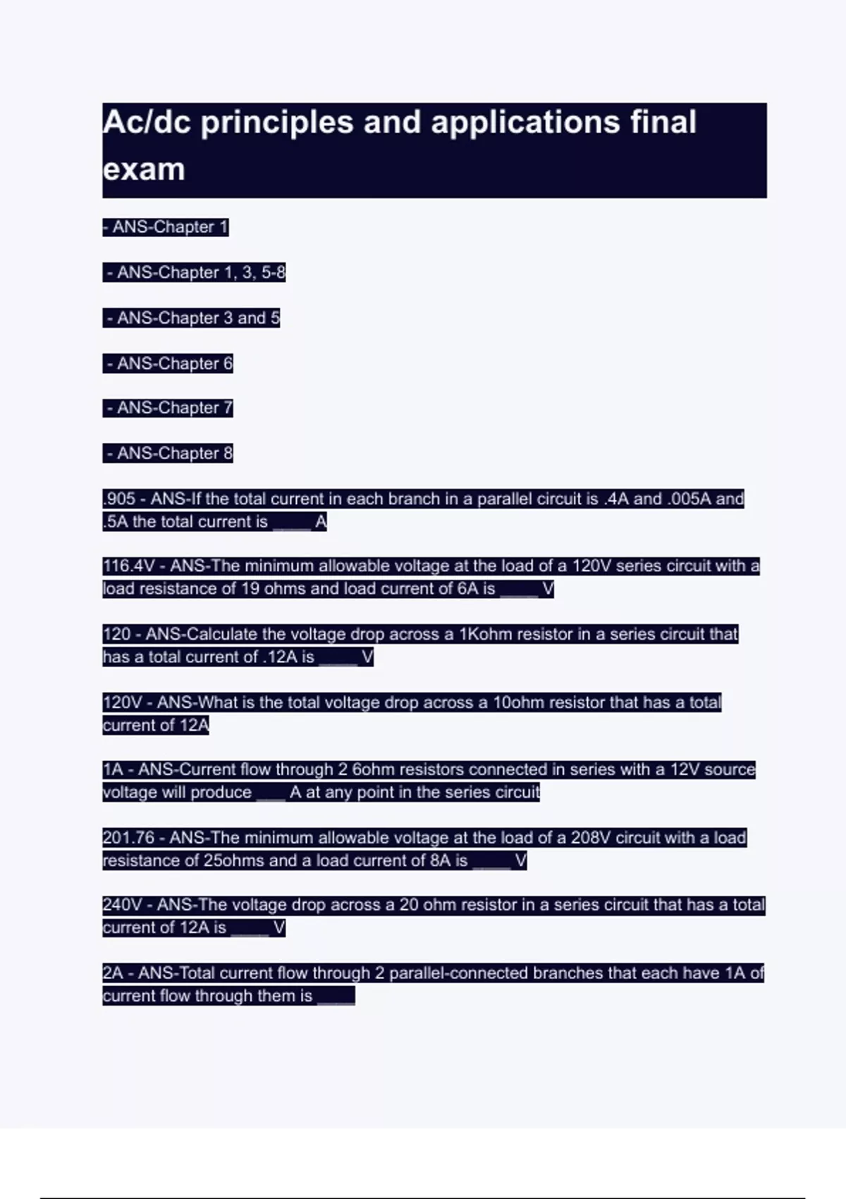 AC & dc principles and applications final exam Questions with Explanations of Answers | latest upate 2024