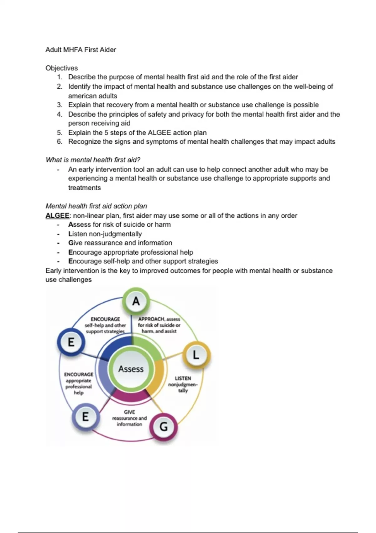 Adult Mental Health First Aid (MHFA) Certification Notes
