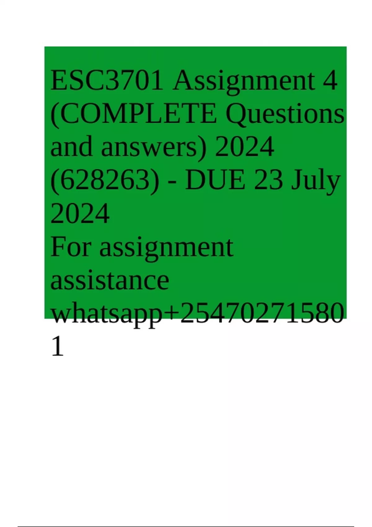 , ESC3701 Assignment 4 (COMPLETE ANSWERS) 2024 (628263) - DUE 23