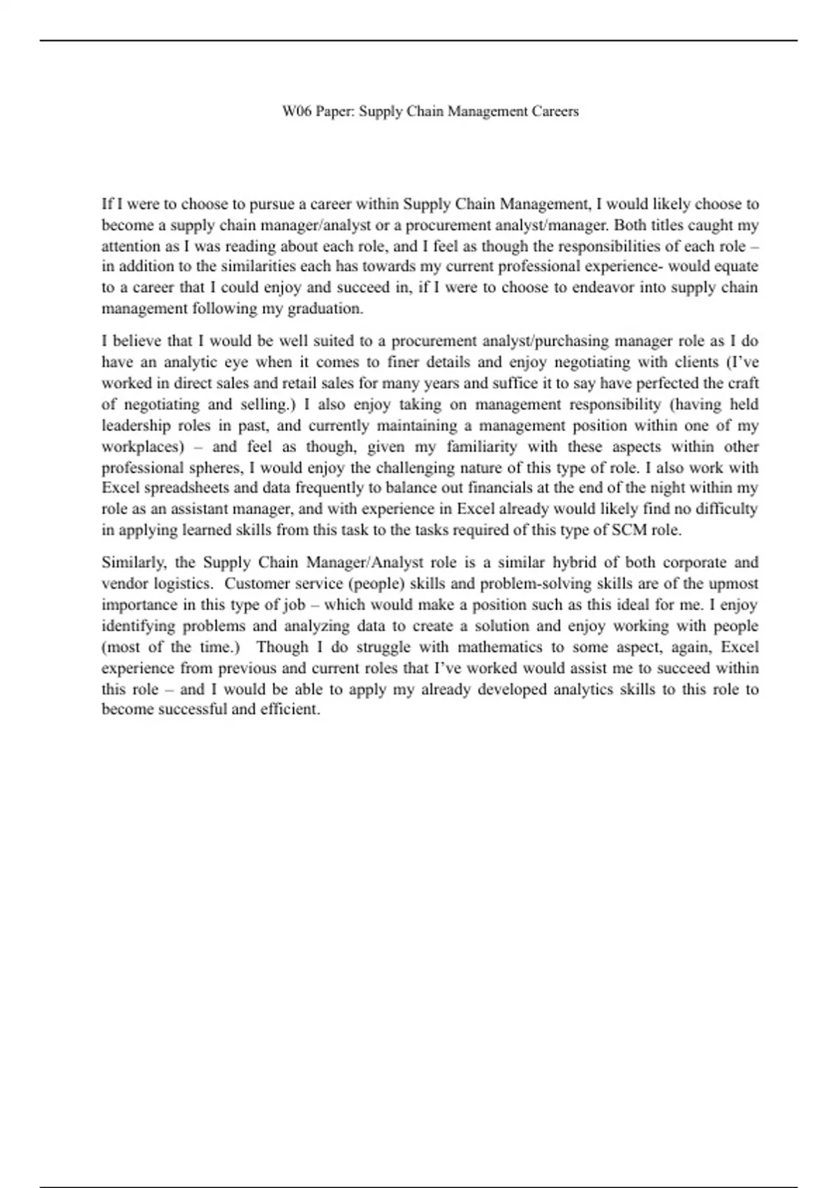 Short essay about two possible careers in supply chain management that identifies attributes and characteristics of each role - and relates them to the lifestyle and strengths of an individual.