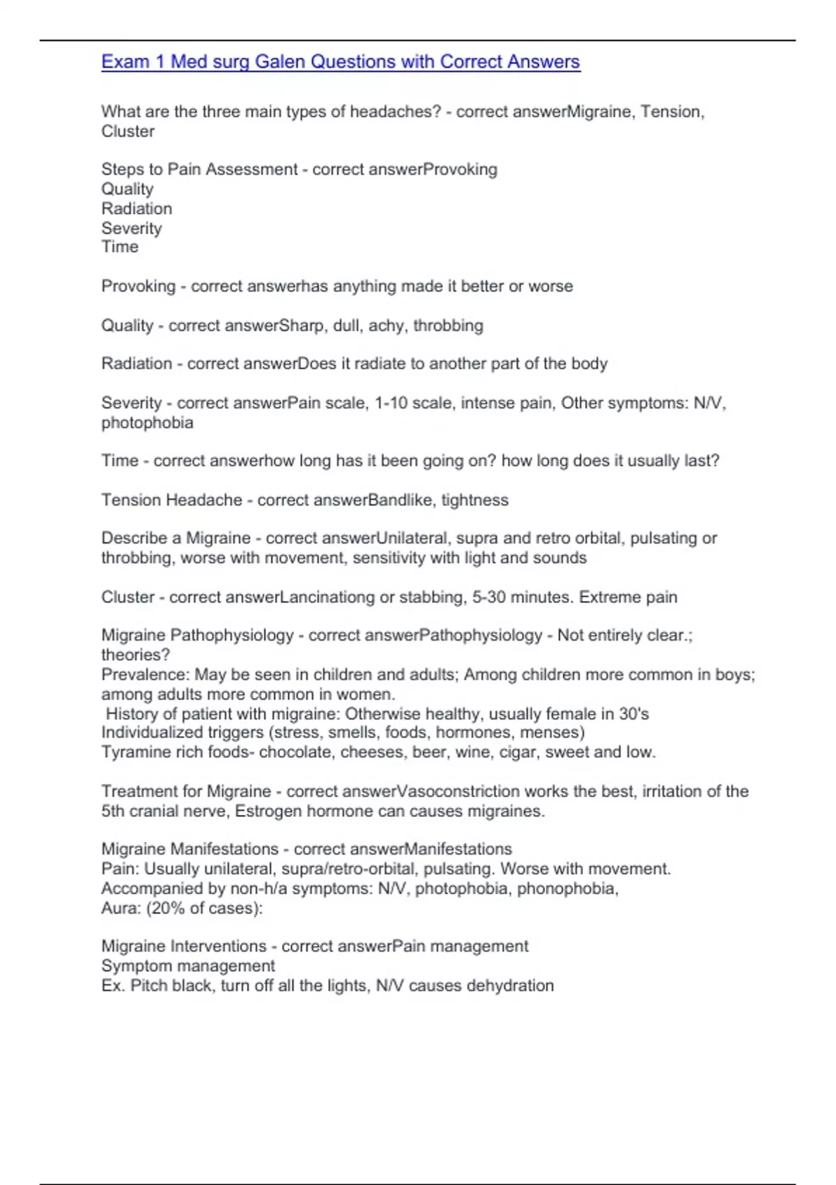 Exam 1 Med surg Galen Questions with Correct AnswersExam 1 Med surg Galen Questions with Correct Answers