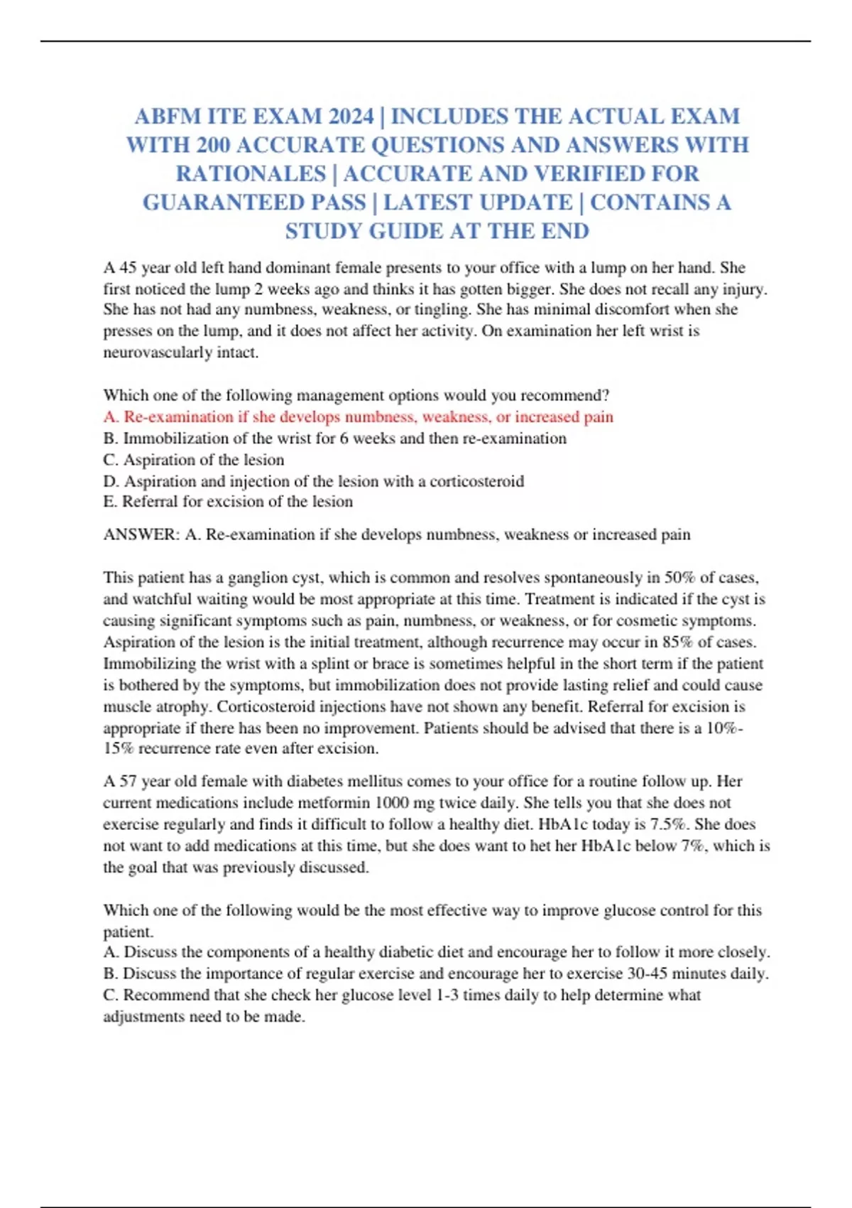 ABFM ITE EXAM 2024 | INCLUDES THE ACTUAL EXAM WITH 200 ACCURATE QUESTIONS AND ANSWERS WITH RATIONALES | ACCURATE AND VERIFIED FOR GUARANTEED PASS | LATEST UPDATE | CONTAINS A STUDY GUIDE AT THE END