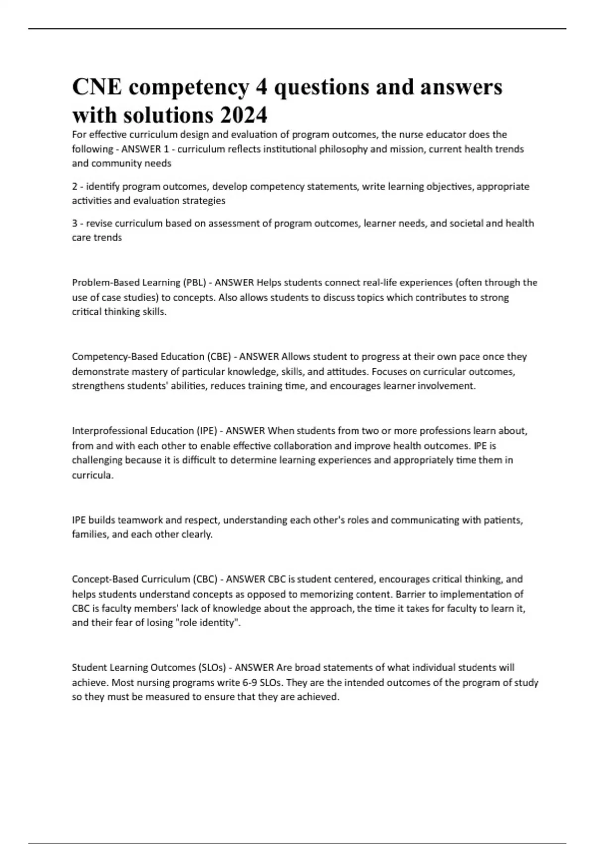 CNE competency 4 questions and answers with solutions 2024