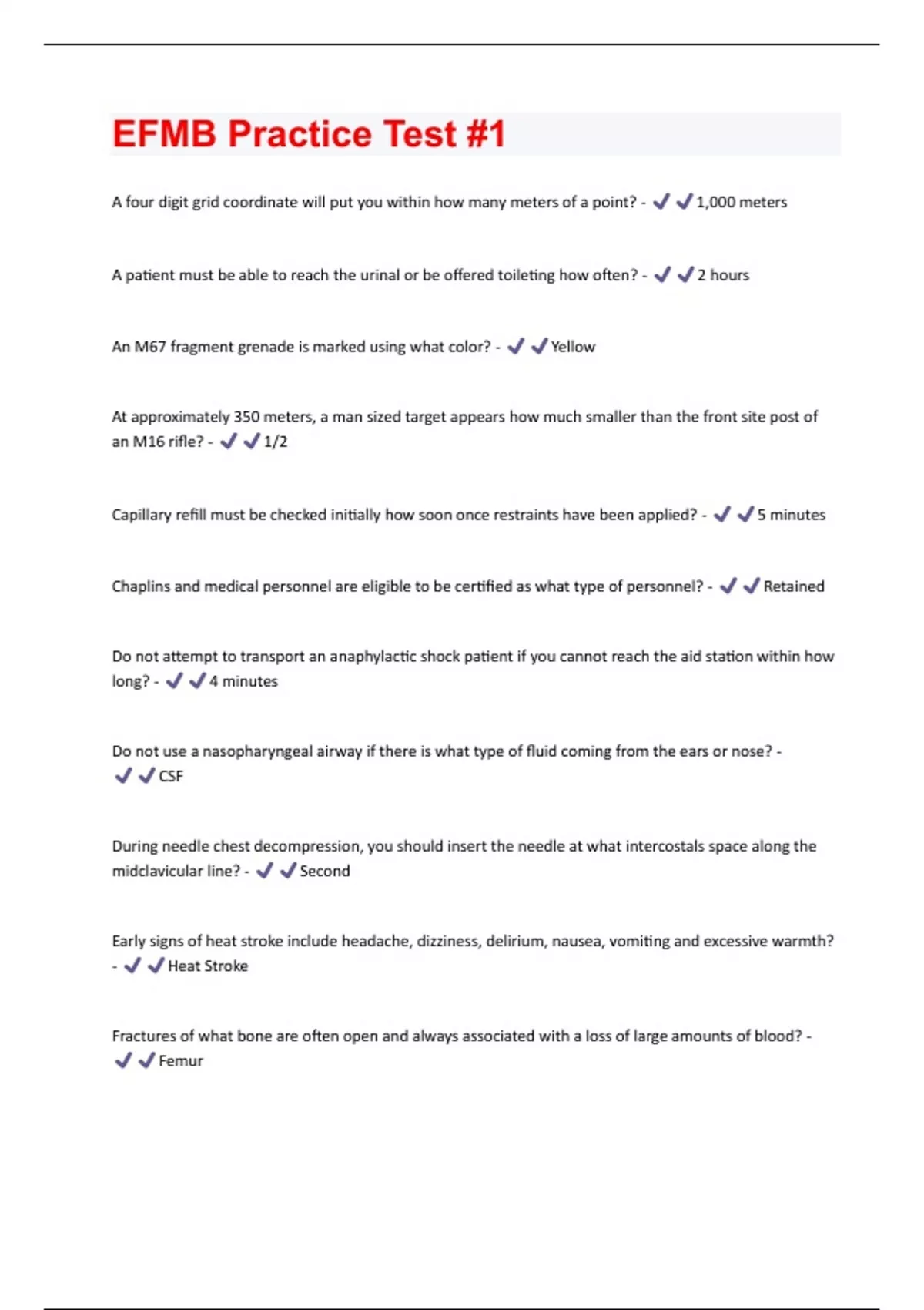 EFMB Practice Test #1 (Questions & Answers) Rated 100% Correct!!