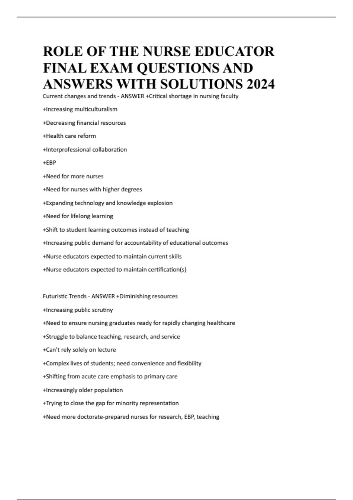 ROLE OF THE NURSE EDUCATOR FINAL EXAM QUESTIONS AND ANSWERS WITH SOLUTIONS 2024
